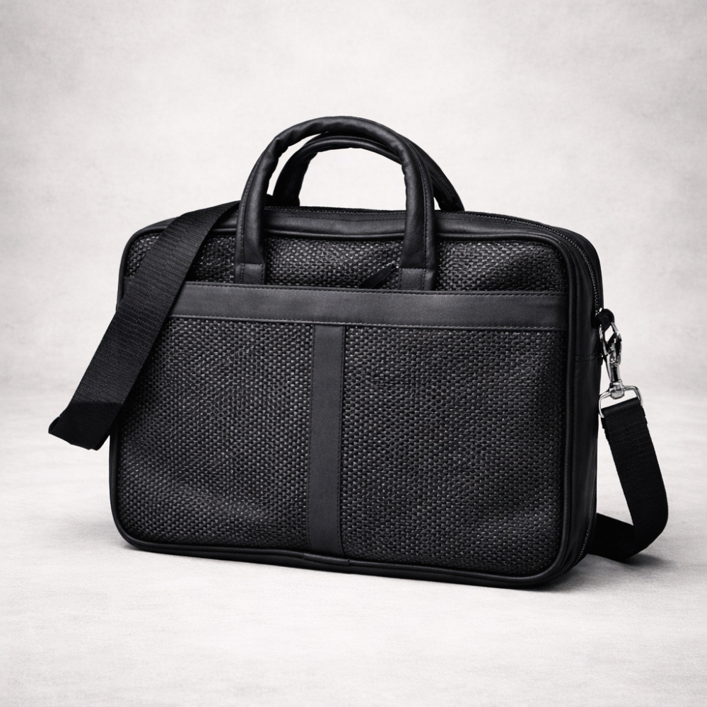 A premium black leather laptop bag designed for professionals. Combines durability, style, and